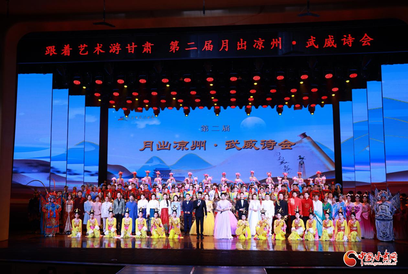 中國甘肅網(wǎng)9月27日訊(西北角·中國甘肅網(wǎng)記者 張振國 文/圖)醉聽古來橫吹曲,雄心一片在西涼。9月25日晚,由甘肅省文旅廳主辦,中共武威市委宣傳部、武威市文體廣電和旅游局承辦的“跟著藝術游甘肅——第二屆月出涼州·武威詩會”在西涼大劇院舉行,再現(xiàn)昨日繁華與今朝盛世,開啟了穿越古今的文化之旅。