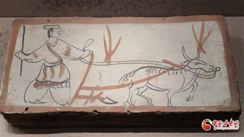 在博物館的“古冢丹青——高臺(tái)魏晉十六國(guó)時(shí)期墓葬壁畫(huà)藝術(shù)陳列”展廳里,記者看到,《二牛耕地畫(huà)像磚》生動(dòng)再現(xiàn)了當(dāng)時(shí)的農(nóng)耕技術(shù):兩頭耕牛架著直轅犁,后隨的男子一手扶犁一手揚(yáng)鞭,展現(xiàn)了典型的“二牛抬杠”耕作方式。《牧鹿圖壁畫(huà)磚》則描繪了古人放牧鹿群的獨(dú)特場(chǎng)景,為研究當(dāng)時(shí)的畜牧業(yè)發(fā)展提供了珍貴資料。