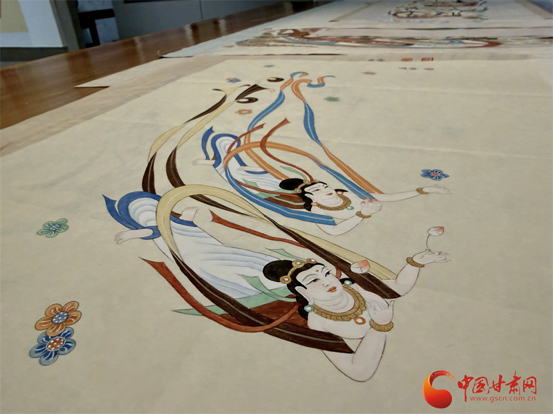 “飛天是吉祥如意的化身,每一條飄帶都是那樣靈動(dòng),展現(xiàn)了古人高超的繪畫技藝。”王亞林表示,畫飛天是傳遞吉祥,更是對(duì)古人藝術(shù)的致敬。