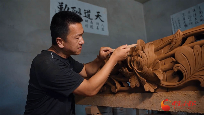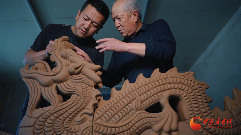 陽(yáng)光透過(guò)灰瓦間隙,照亮作坊里的磚雕:龍游天際、鳳銜寶珠、麒麟踏云、吻獸吞脊——這些曾盤(pán)踞在故宮太和殿的祥獸,如今在西北山村的窯洞里,被邸家人的雙手復(fù)刻重生。