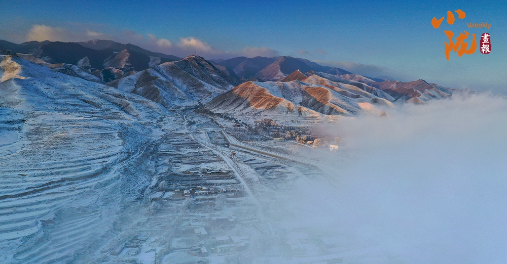 山下的屋舍靜臥于無(wú)邊的潔白中,淺藍(lán)天色漸次暈染,蒼灰山脊如墨筆勾勒,山川草木皆成了畫(huà)中疏淡的筆意,低訴著悠長(zhǎng)的冬韻。
