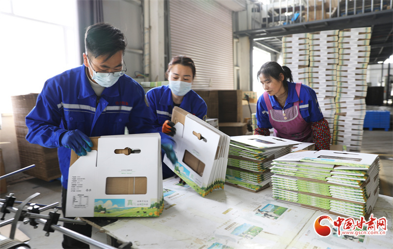 時下,在位于民樂工業(yè)園區(qū)的一家生產(chǎn)車間內(nèi),工人們正緊張有序地進(jìn)行包裝盒裝配、成型作業(yè)。